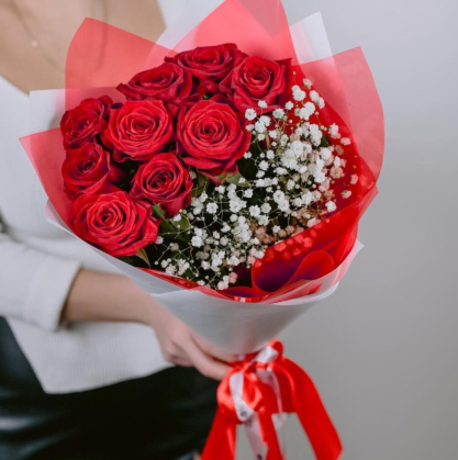 Букет из красных роз и гипсофилы | Купить в Артеме